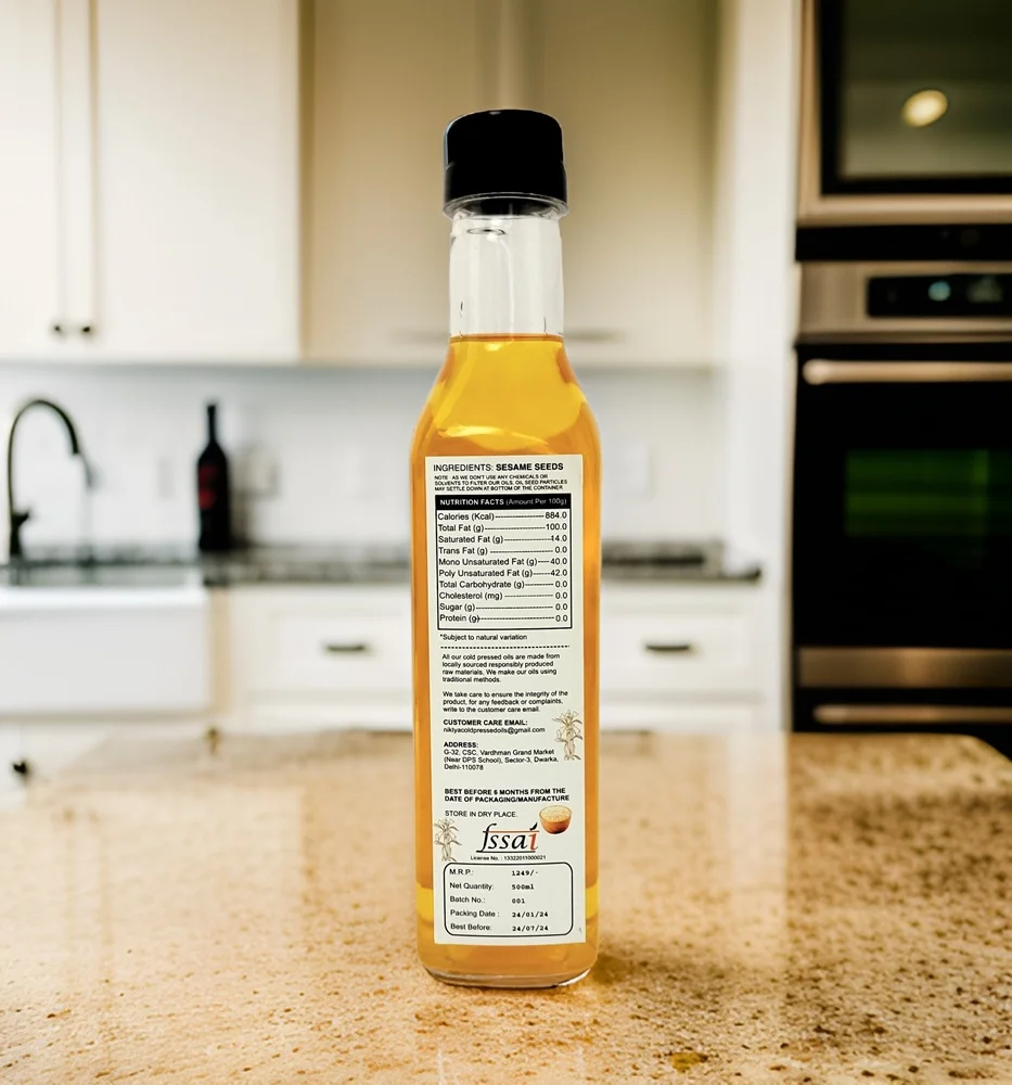 Cold Pressed Perfection: Our Sesame oil is cold-pressed to retain its maximum nutritional value and purity. No heat or chemicals are used during extraction, ensuring that you get only the best.