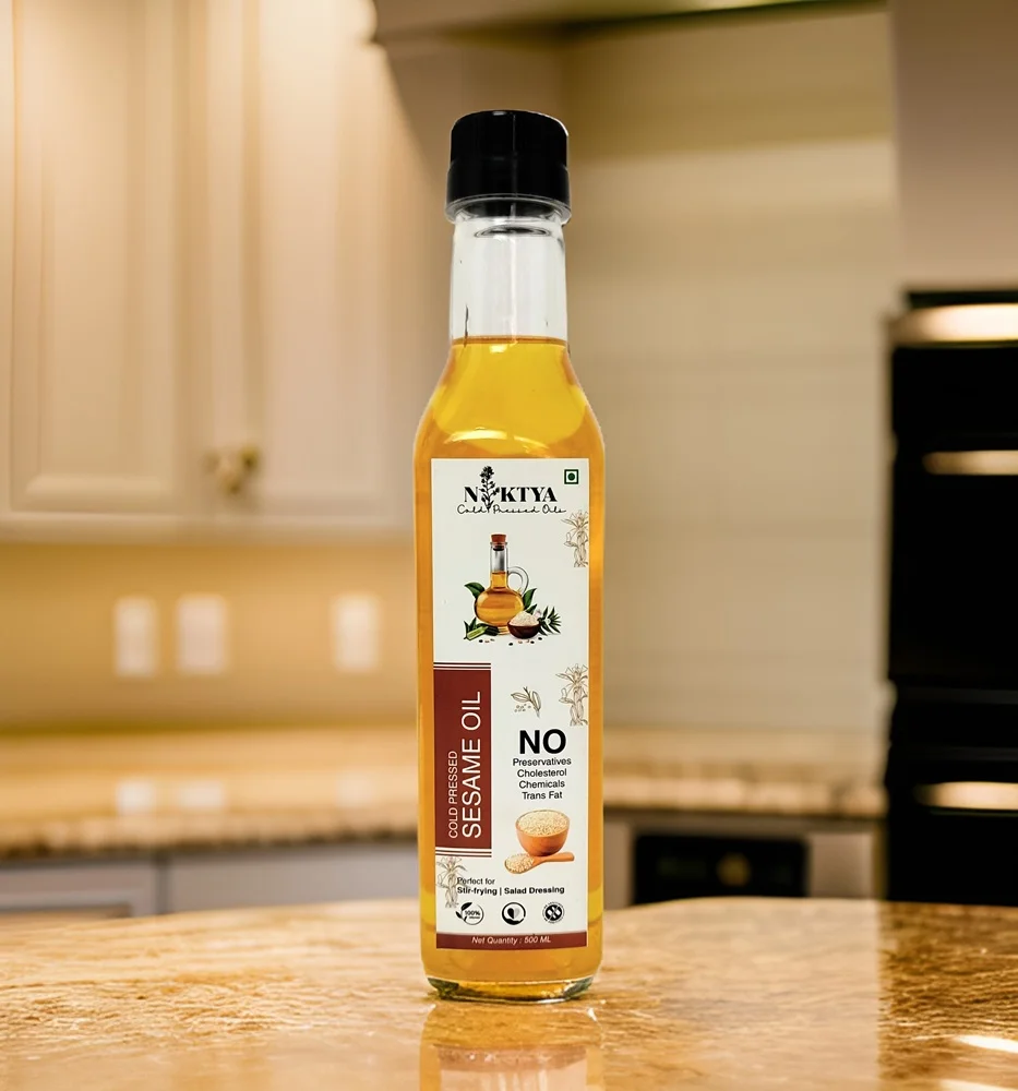 Niktya Cold Pressed Sesame Oil brings you the essence of nature in its purest form. Our Sesame oil is extracted using the cold-pressed method, preserving its natural goodness and delivering unparalleled benefits for your skin, hair, and health.